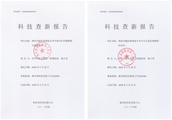 衡立君副教授多年来一直致力于经鼻内镜手术研究,在高国栋教授和屈延主任的指导下,他创新研发了交叉强化硬膜修补术,即应用颅底修补中交叉强化和弱点加强的原理,在剪开硬膜时保留一侧硬膜蒂,缝合修补多层组织封闭“洞口”,提高内镜经鼻手术中高流量脑脊液漏的颅底重建效果。