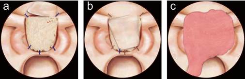神经内镜经鼻颅底手术中交叉强化硬膜修补技术示意图