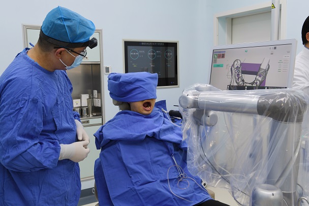 1月14日上午,在空军军医大学口腔医院数字化口腔医学中心,由赵铱民教授团队研发的自主式种植牙手术机器人为第100例患者成功实施了种植牙手术。中国工程院院士张志愿教授见证了这一历史时刻。