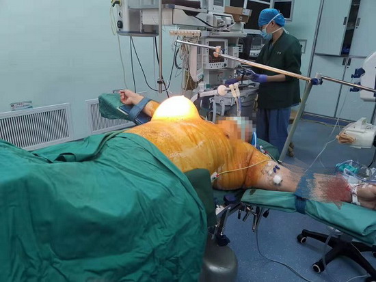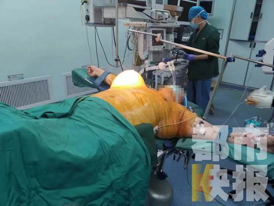 男子右胸长10斤巨瘤 专家妙手6小时切除