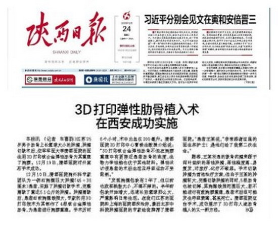 唐都医院成功为一患者植入3D打印弹性肋骨