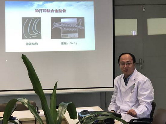 植入3D打印钛合金弹性肋骨弥补患者胸壁巨大缺损
