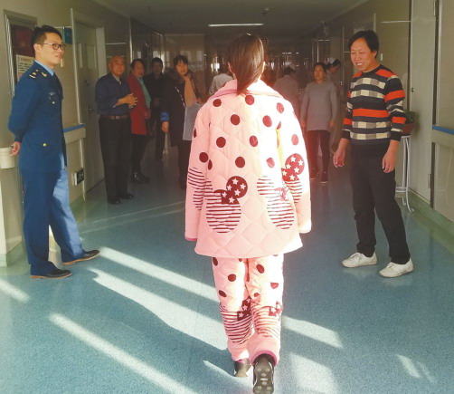 1月19日下午,当记者在住院病房见到贺琳琳的时候,她躺在病床上和家人有说有笑。为了向记者展示手术的效果,她主动下床在病房走廊上走了一圈。大概50米的楼道,她走得小心翼翼,虽然步伐不大,但看起来和正常人走路没什么大的区别。