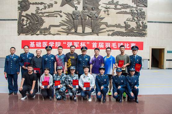 4月26日下午,基础医学院首届“强军杯”羽毛球赛,在全体参赛选手踊跃参加、顽强拼搏下,圆满完成了各项赛事。中科院院士、神经解剖学专家鞠躬教授,免疫学专家杨安钢教授作为颁奖嘉宾,为获奖选手颁发证书奖品。