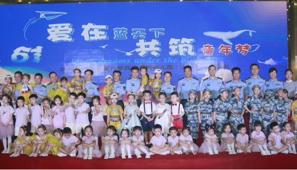 西京医院幼儿园“爱在蓝天下,共筑童年梦”文艺演出精彩绝伦,开场舞《歼十出击》彰显了空军人逐梦蓝天的豪情壮志;韵律操表演《快乐小猪》、体能展示《花样跳绳》、情景剧《太空漫步2019》激情洋溢、活力四射,小演员们惟妙惟肖的表演,呈现了一场生动活泼的视听盛宴,孩子们的优雅、端庄、活波、可爱深深感染着现场的每一个观众。