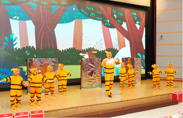 校直幼儿园以“迷彩星,童之梦”为主题,全体师生和家长分别以短片《我是闪耀迷彩星》、亲子剧《老虎照镜子》、舞蹈《中国梦娃》、《猫鼠之夜》、《希望的摇篮》等丰富多彩的表演,充分展示了幼儿的精神风貌,表达了对幸福生活和美好童年的喜爱。活动还特别邀请到了西安市新知小学刘岚校长,新知小学带来的新派武术表演《印象太极》将演出推向了高潮,活动在迷彩星合唱团齐声高歌“我们在灿烂阳光下,跟着共产党,建设大中国”中落下帷幕。