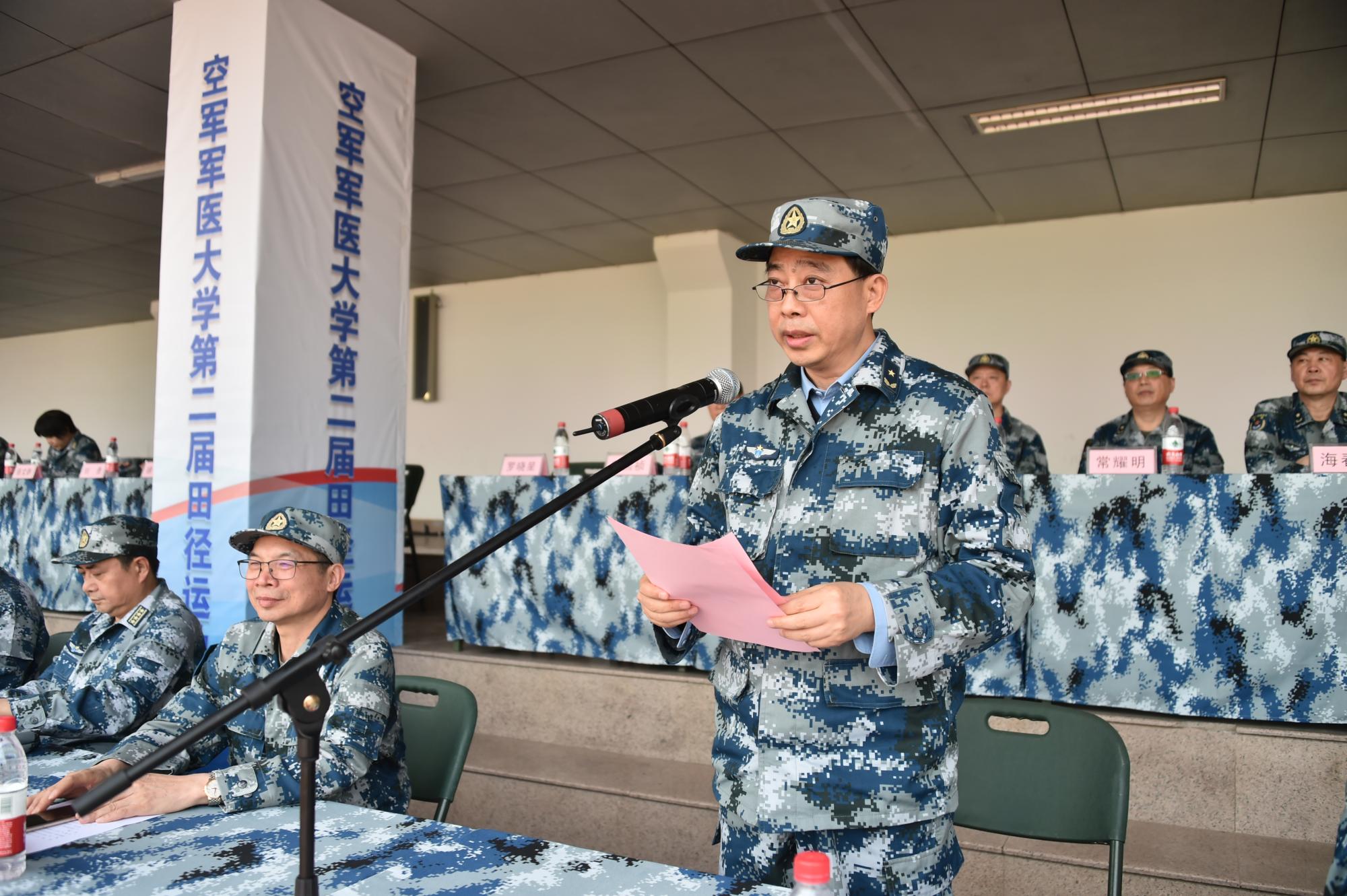 季志宏政委在讲话中代表学校党委领导向取得优异成绩的代表队和运动员表示热烈祝贺,向付出辛勤劳动的教练员、裁判员和全体工作人员表示诚挚慰问。他指出,本届运动会充分展示了军医大人奋进新时代、阔步新征程的崭新风貌。奋飞新时代,就是要始终保持奋勇争先的进取姿态,以奋勇争先、永不放弃的进取意识,以担当奉献、敬岗爱业的忠诚品质,以“夺金牌、扛红旗、争第一”的战斗姿态,推进学校跨越发展;就是要始终保持枕戈待旦的忧患意识,以建设一流战略空军为己任,心怀忧患,保持警醒,把平时当战时,把岗位当战位,以时不我待的使命感紧迫感,跑好属于我们的“历史一棒”;就是要始终坚持握指成拳的团队精神,团结一心、众志成城,同心同德、上下合力,始终保持赛场夺金的决心与豪气,同心筑梦、同力奋飞,不断实现新的跨越。