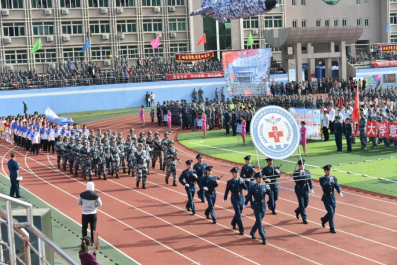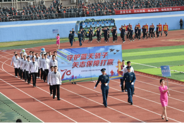 春风激荡红旗飘,卫勤尖兵斗志昂。4月29日上午8时,以 “礼赞70年 奋飞新时代”为主题的空军军医大学第二届田径运动会隆重开幕。