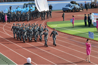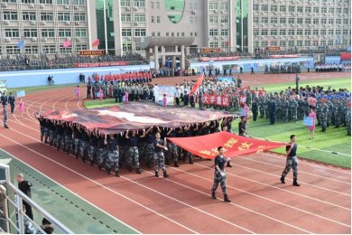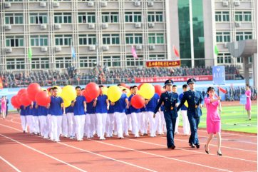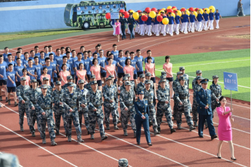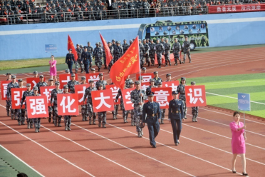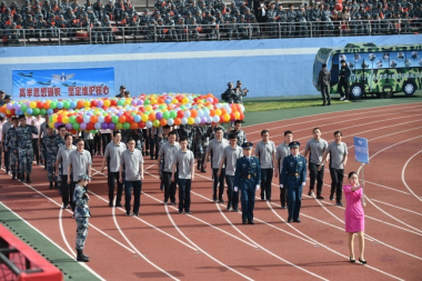 入场式上,会徽会标方队、红旗方队、高级专家方队、军官方队、文职人员方队、裁判员方队和15支代表队,伴着雄壮有力的《运动员进行曲》,迈着铿锵的步伐,洋溢昂扬的士气,依次通过主席台,赢得全场阵阵喝彩,充分体现出师生员工精诚团结、奋发拼搏的精神面貌,生动展示了追求卓越、争创一流的坚定信念。