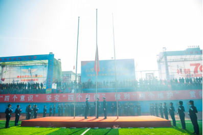 伴随着庄严的国歌,在基础医学院70名学员组成的方队护卫下,鲜艳的五星红旗冉冉升起、迎风飘扬。裁判员代表马涛、运动员代表李远辙分别宣誓。