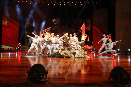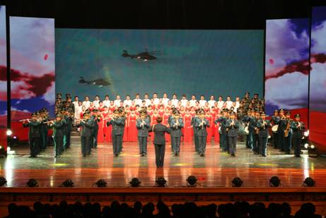 “铭记抗战·铸牢军魂”经典红歌演唱会是本届文化艺术节的开幕式。演唱会以歌曲《松花江上》拉开序幕,展现了“九一八”事变后山河破碎、国破家亡的悲惨现实。表演唱《长城谣》、《弹起我心爱的土琵琶》、《团结就是力量》,再现了当年抗战军民团结一心、同仇敌忾和对故乡的深沉思念之情。表演唱《到敌人后方去》、《地道战》、《游击队之歌》、《在太行山上》、《大刀进行曲》等经典抗战歌曲,讴歌了中华民族浴血奋战、不怕牺牲、坚持抗日的自强不息精神。在晚会现场,还特邀了我校五九级学员周民教授为全校师生员工奉献了朗诵《红色回音》。周民教授是革命英烈新四军副参谋长周子昆之女,今年又荣幸地受邀参加了“九三”阅兵,她用隔空对话的方式,生动地表达了她与父亲之间的深厚感情,教育我们牢记先辈遗志,勇于担当起历史赋予我们这一代人的责任。合唱《血染的风采》、独唱《忘不了》展现了一代代四医大人在合校后的60多年里继承发扬红色基因,出色完成多次重大战役战斗及非战争军事行动任务,书写了姓军为战的华丽篇章。合唱《没有共产党就没有新中国》表达了四医大人将永远高举党的旗帜,铸牢听党指挥的军魂。曾参加过“九三”阅兵的我校蓝天军乐队为全体观众演奏了《强军战歌》,再次奏响了时代强音。最后,晚会在雄壮的《校歌》声中落下帷幕,激励全体四医大人牢记抗战历史,弘扬抗战精神,为实现强军兴校而努力奋斗。