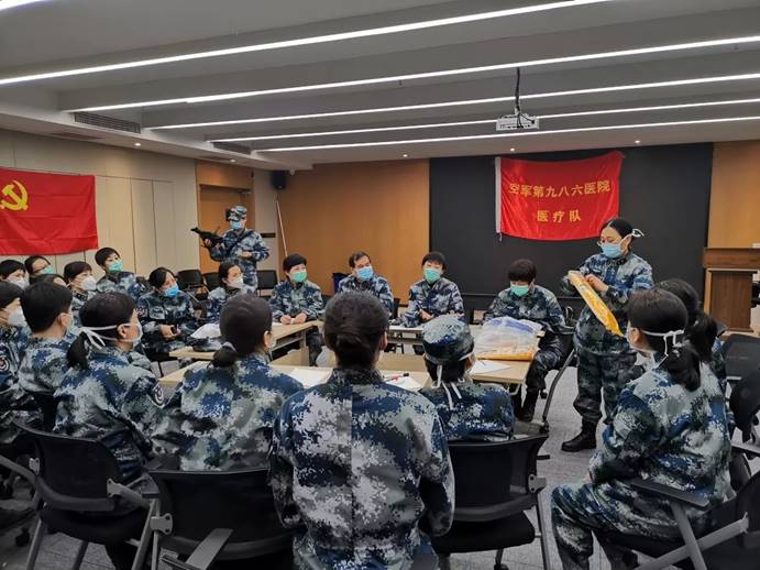 在没有硝烟的战场上,鲜红的党旗高高飘扬在疫情防控一线。空军医疗队坚决响应习主席号令,不忘初心,牢记使命,在疫情防控阻击战中,不怕牺牲,冲锋在前。