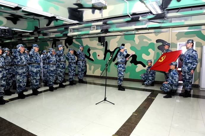 唐都医院急诊科全体党员对着党旗庄严宣誓。