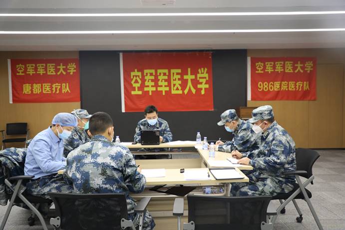 随后医疗队各个党支部组织对空军首长勉励与关怀的学习,医疗队的队员纷纷表示说,来到武汉后,收到了空军首长的亲切关怀和鼓舞,听说了学校党委走访慰问的系列暖心活动,也看到电视上的宣传报道,非常感动,也很振奋,一定会竭尽所能、科学救治、精心护理,实际行动诠释新时代空军军医大学人的使命担当,同武汉人民一道,坚决打赢疫情防控阻击战,不负重托、不辱使命。
