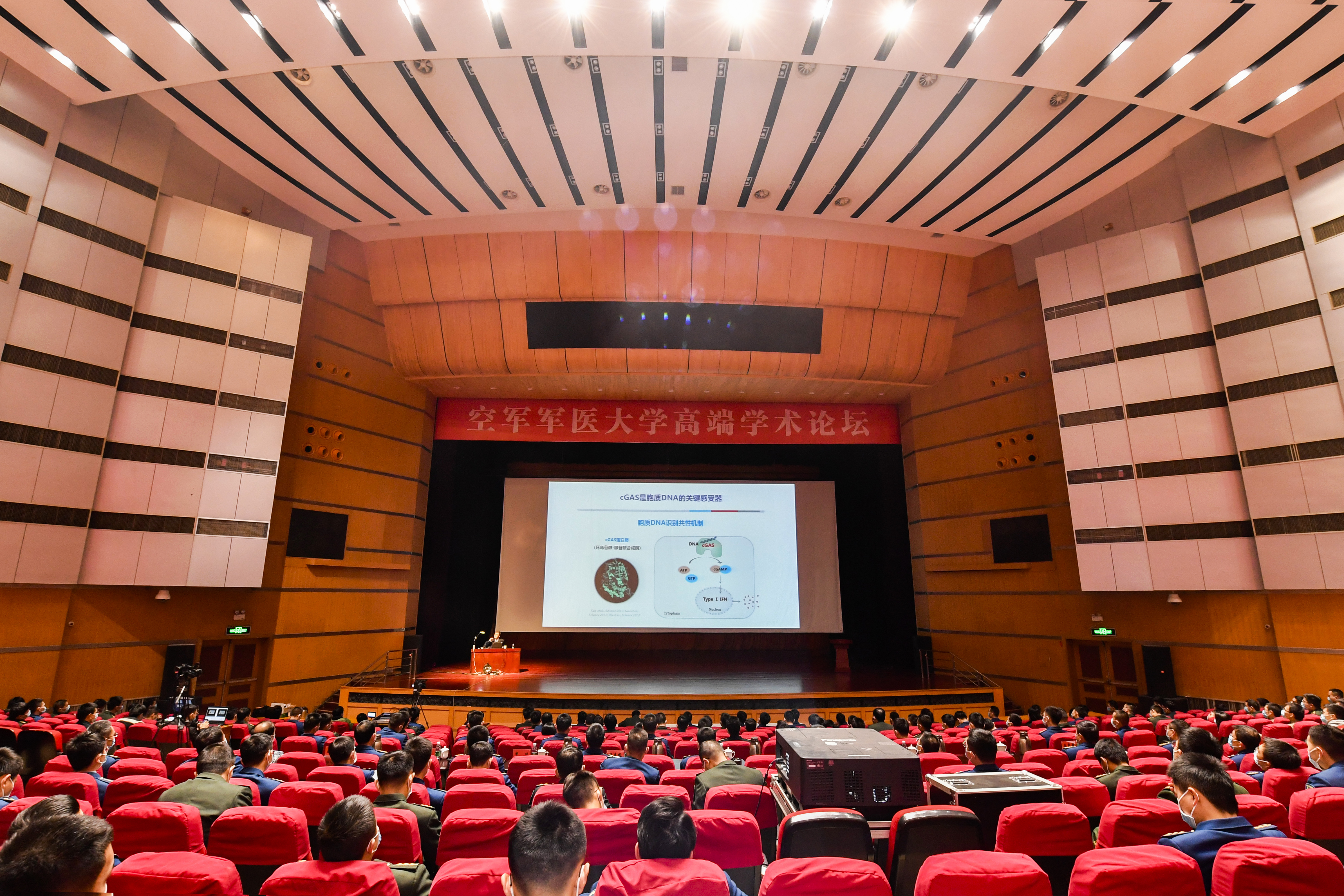 12月25日下午,张学敏院士在长乐大礼堂作了题为《学科交叉驱动科研范式创新》的报告。张思兵校长、王东光副校长、杨春风副政委出席,机关处(办)领导、各单位分管领导、科技人员、在校研究生学员代表参加,空军特色医学中心、第二附属医院设立分会场。报告会由王东光副校长主持。