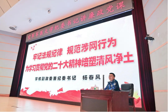 “涉网违纪违法行为有6张‘肖像图’,分别是逾矩涉政型、网赌网贷型、好奇猎艳型、不当交友型、炫耀曝光型、失密泄密型……”10月21日下午学校科学会堂里,一堂别开生面的廉政党课火热开讲。学校副政治委员兼纪委书记杨春风以“牢记法规纪律规范涉网行为,为学习贯彻党的二十大精神培塑清风净土”为题,为全校师生员工展开授课。学校领导,机关处(办)领导,各单位主官,全体机关干部和基层官兵代表参加。