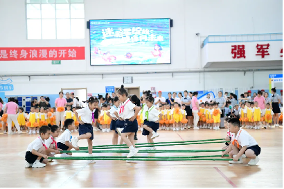 校直幼儿园举办了以“迷彩星绽放,健康向未来”为主题的综合展示体验活动,将体能锻炼、民间体育游戏与民间艺术融入其中,最大限度让全园孩子参与节日互动。伴随着现场的欢声笑语,相关领导观看了活力四射的器械操、皮筋舞、竹竿舞等多种形式的体能运动展示,与孩子们一起在手工DIY、美食制作中享受童心童趣的世界。