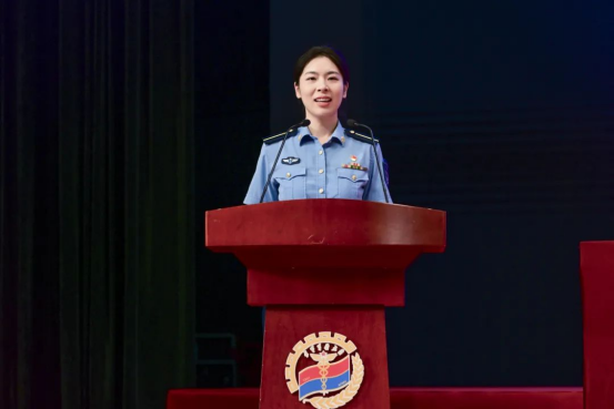 学员代表2020级五年制航空航天医学专业董婧婕同学发表了毕业感言,分享了大学时光的学思践悟和勇毅担当,回忆了母校的精心培育和温馨关怀,并表示热血铸就强军梦,青春淬火启征程,立志做“有灵魂、有本事、有血性、有品德”的新时代人民军医。