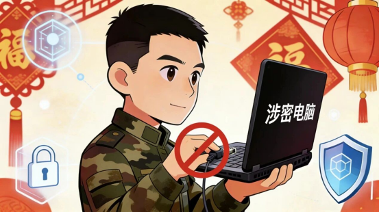 互联网访问不“裸奔”。春节期间上网冲浪,更要筑牢网络安全屏障。牢记“涉密不上网,上网不涉密”的铁律,严禁使用涉密计算机、移动存储载体连接互联网;严禁通过微信、QQ、邮箱等互联网应用传输任何涉密和内部信息。在虚拟的网络世界里,也要穿好“防弹衣”,不让数据在网络空间“裸奔”。