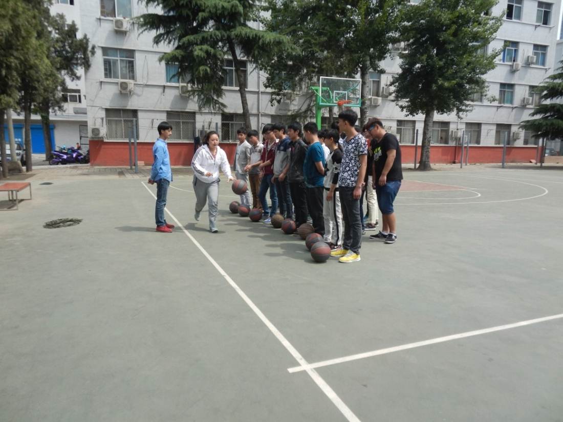为了推进体育课堂教学,提高体育教学质量,经过精心设计,认真准备,2015年5月8日上午第3节课,基础部张花卉老师在篮球场上上了一堂《行进间运球》公开课,全体基础部老师现场观摩与指导。