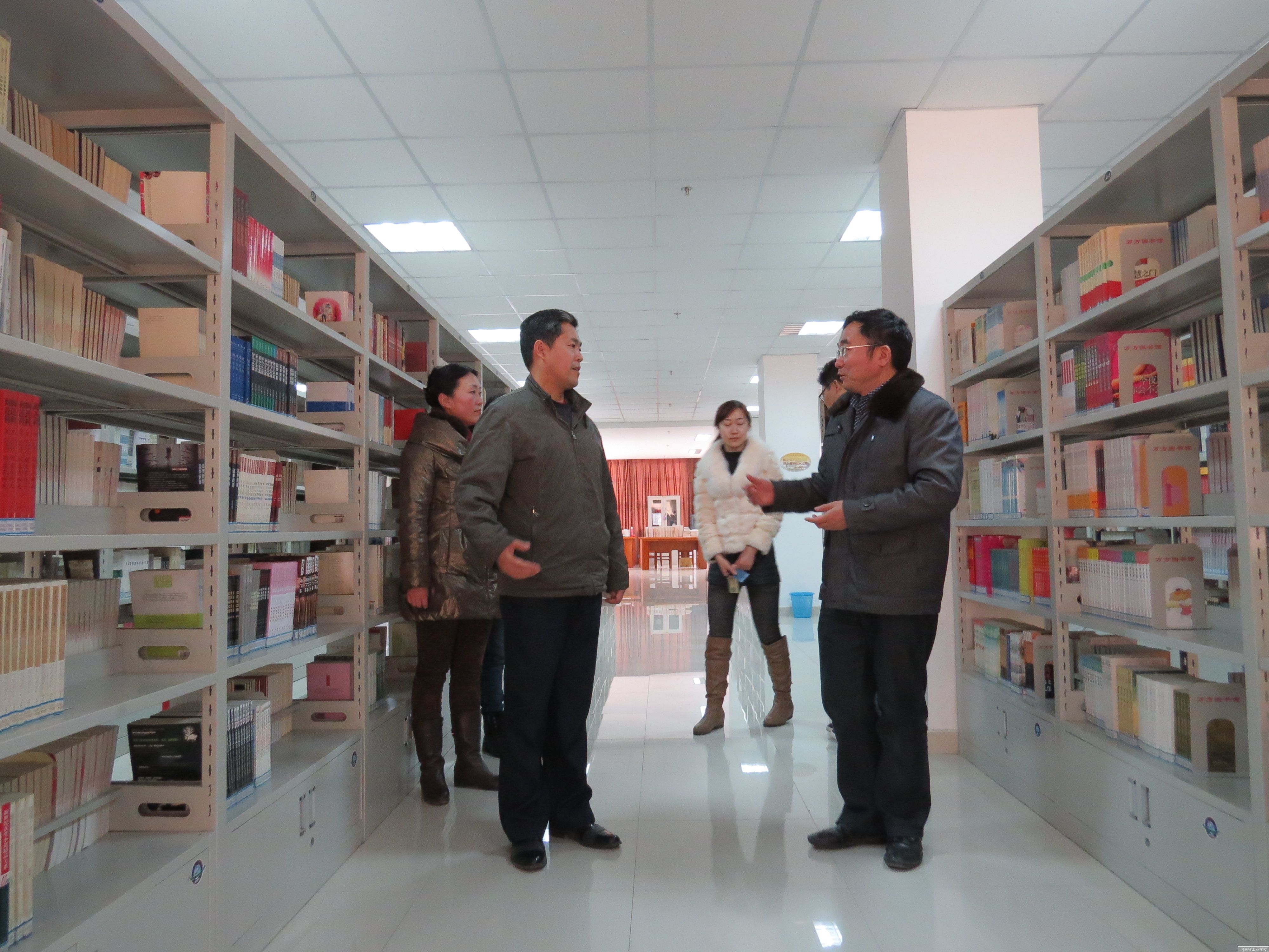 图书馆书库分为新书展区、综合书库、各专业书库、报刊阅览室、教师阅览室等。张馆长介绍,新书展区方便了读者了解最新到馆文献,可以激发新读者潜在需求,同时可以缓和书库上架人员的工作量。各专业书库充分考虑学院的专业设置,方便各专业师生查找文献。