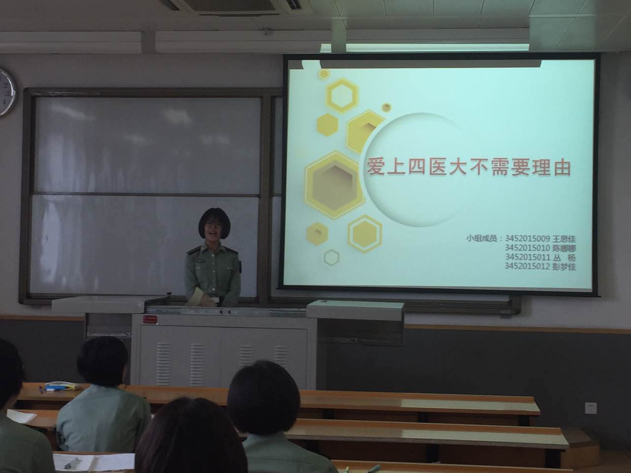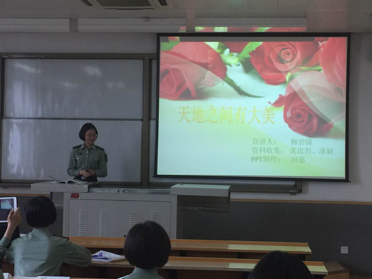 5月9日上午,2015级20名本科学员通过寻找、发现、分析美,分别以“让人HOLD不住的科学美”、“天地之间有大美”、“爱上四医大不需要理由”、“文学艺术”、“人生最美是军旅”五个主题出发,运用图片、音频、视频、诗词歌赋鉴赏等多种方式,在护理美学与礼仪课堂上向大家展示美的基本类型。