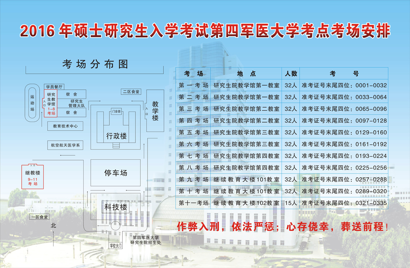 本校考点考场分布图、违规处理办法、邢法修正案(九)、诚信应考公告、考场安排和考场规则见附件。