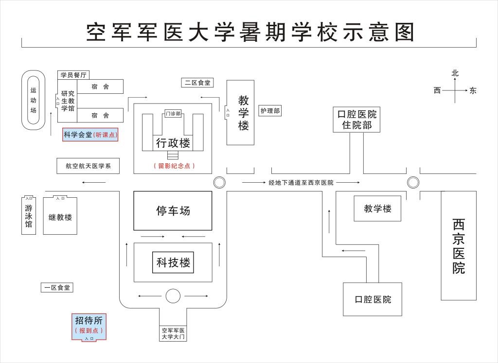 报到地点:空军军医大学招待所,具体见暑期学校示意图。