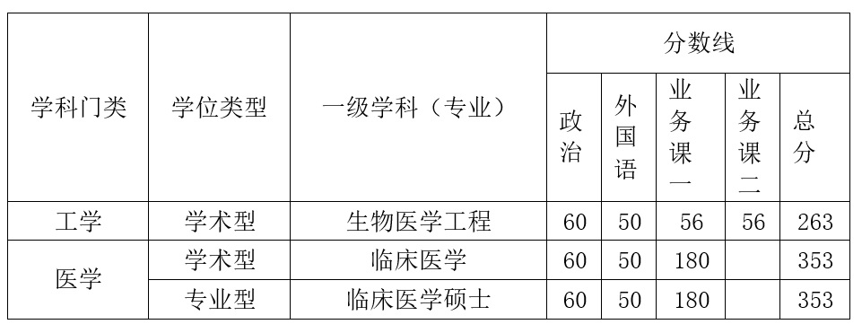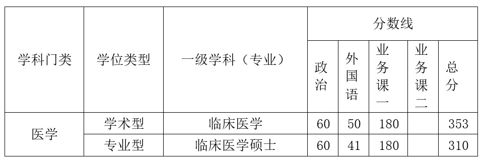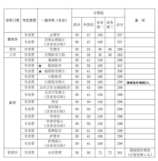 注:1.★临床医学(含学术型和专业型)专业总分线为初试原始成绩,其他各学科(专业)分数线均为享受军队加分政策后成绩;