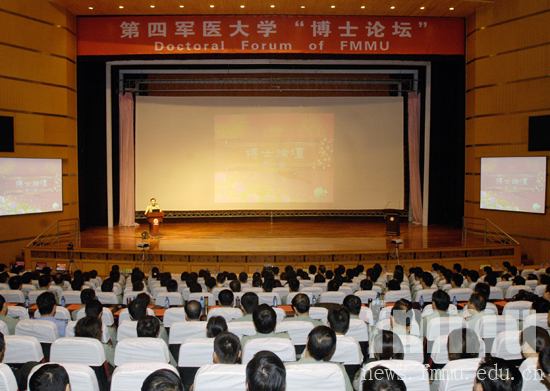 6月11日晚,在校首长的指导和关怀下,由研究生院和研究生管理大队倾力打造的第四军医大学首场“博士论坛”在长乐大礼堂隆重举行。樊代明校长、戴旭光政委、殷进功副校长和其他学校常委,全体机关干部,各部院系和研究生管理大队领导,全体研究生导师和研究生近2000人参加了本次活动。